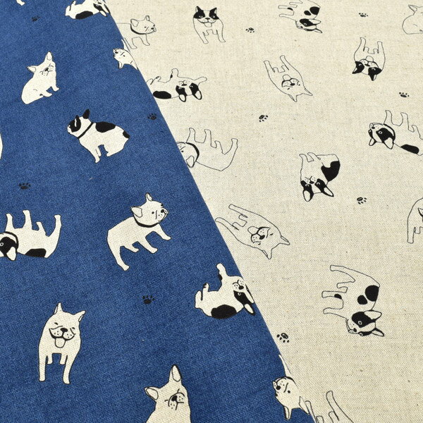 綿麻プリント(フレンチブルドッグ)【50cm単位】花もめんセレクト