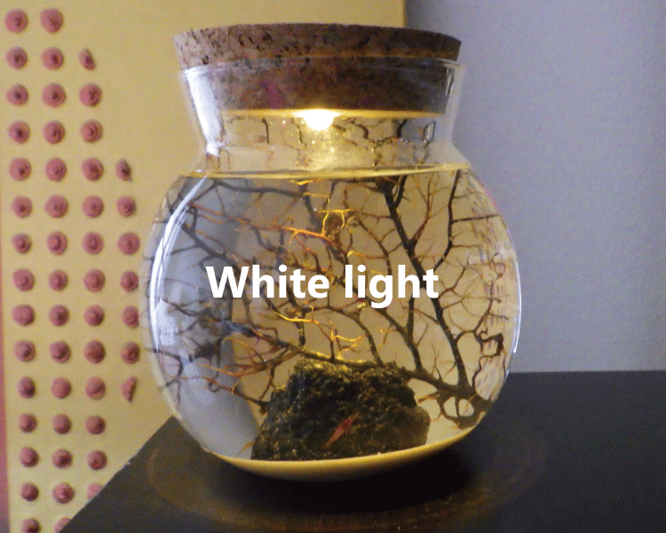 コルク蓋にLEDライトがついた球体水槽。