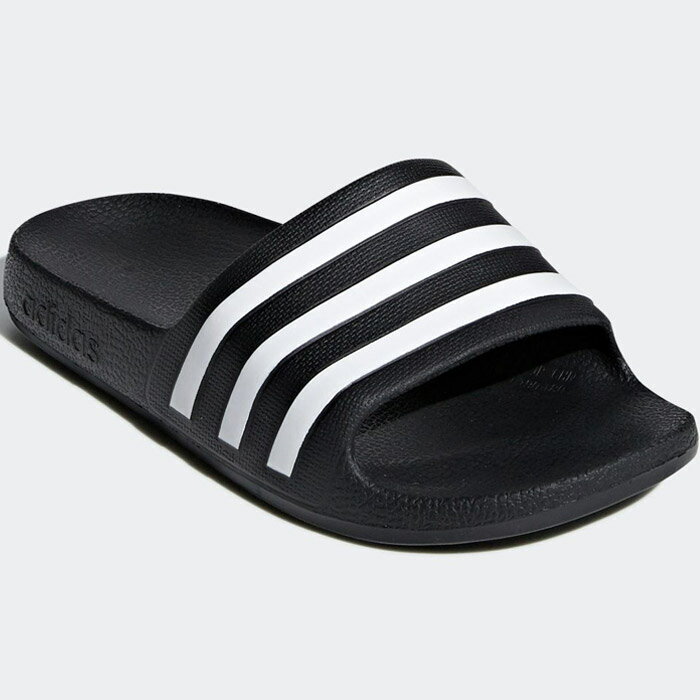 アディダスの新しいキッズ用定番シャワーサンダルADILETTE AQUA K【アディレッタアクア K】は、一体成型のEVA素材によって濡れても速乾性に優れ、シャワータイムに最適な一足。